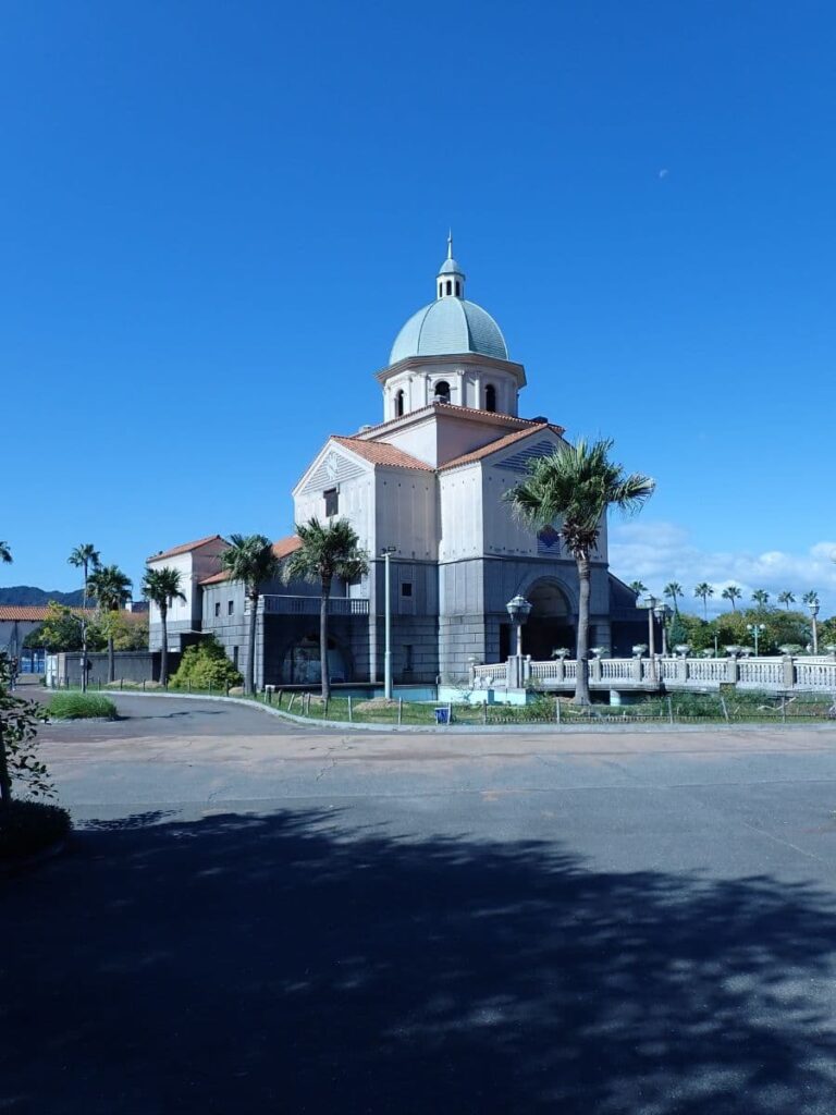 メルヘンな建物のすぐそばに、なぜだかヤシの木。