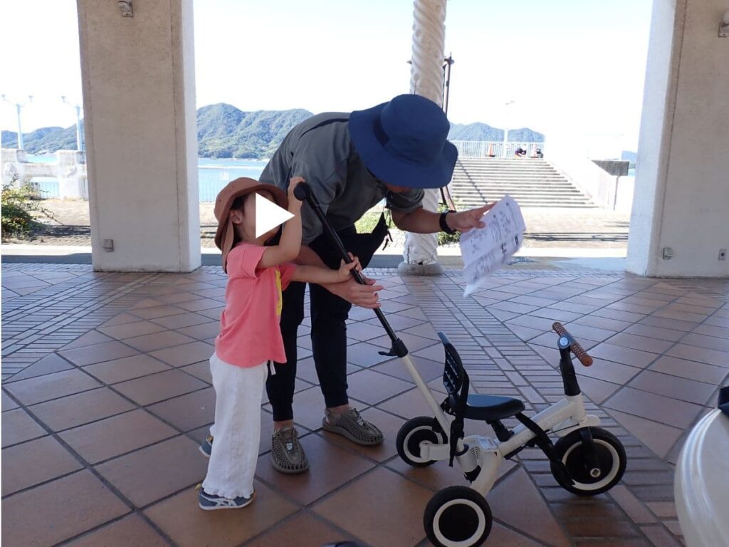 この日の3歳のメインイベントは、三輪車の練習。