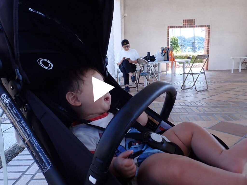 わたしは、息子を抱っこ紐で 園内を散歩。ベビーカー巡回で寝てくれたら楽なんだけど。。抱っこ紐じゃないとお昼寝ができない息子。