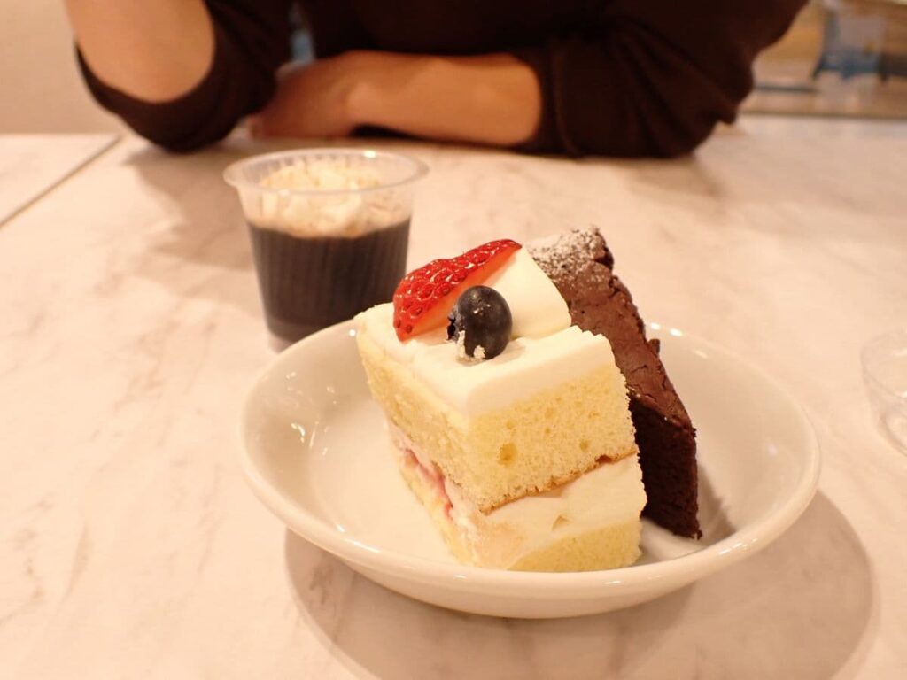 ロビー階の下の1階にある「CAFE nami note(カフェ ナミノオト)」にて、シャトレーゼケーキと、1ドリンクを。ショーケースに入ったケーキの中から、食べたいものを選ぶという、贅沢なウェルカムスイーツです。