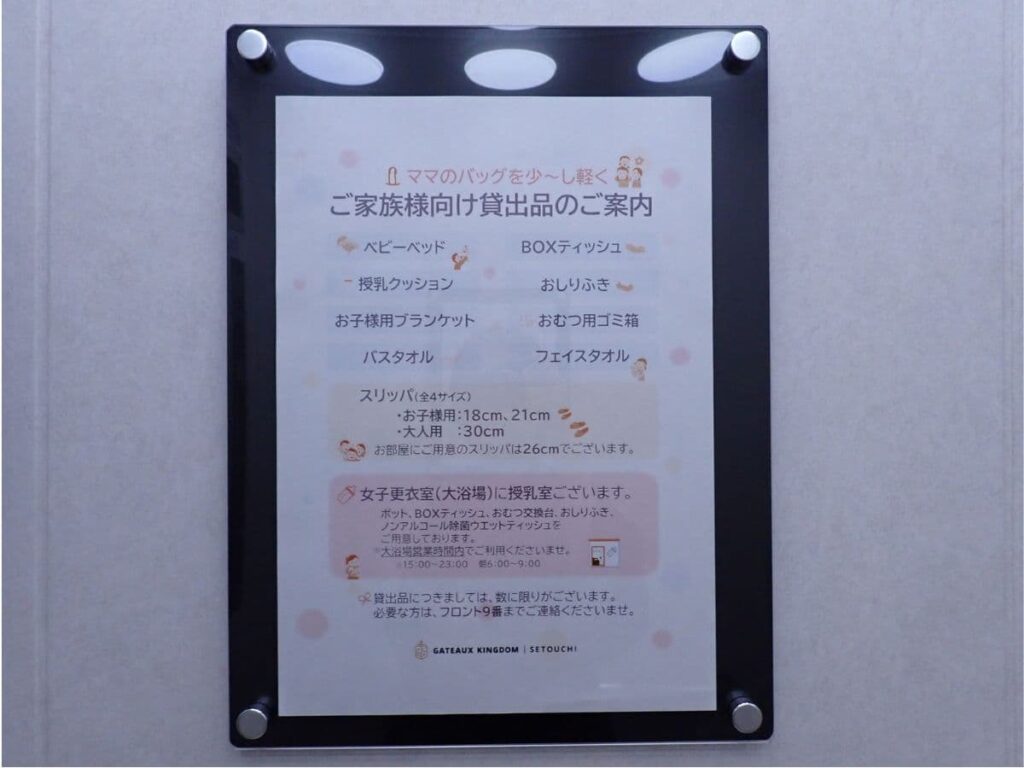こちらは子連れ向けの貸出品。わが家はオムツ用ゴミ箱をお借りしました。