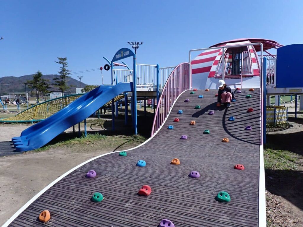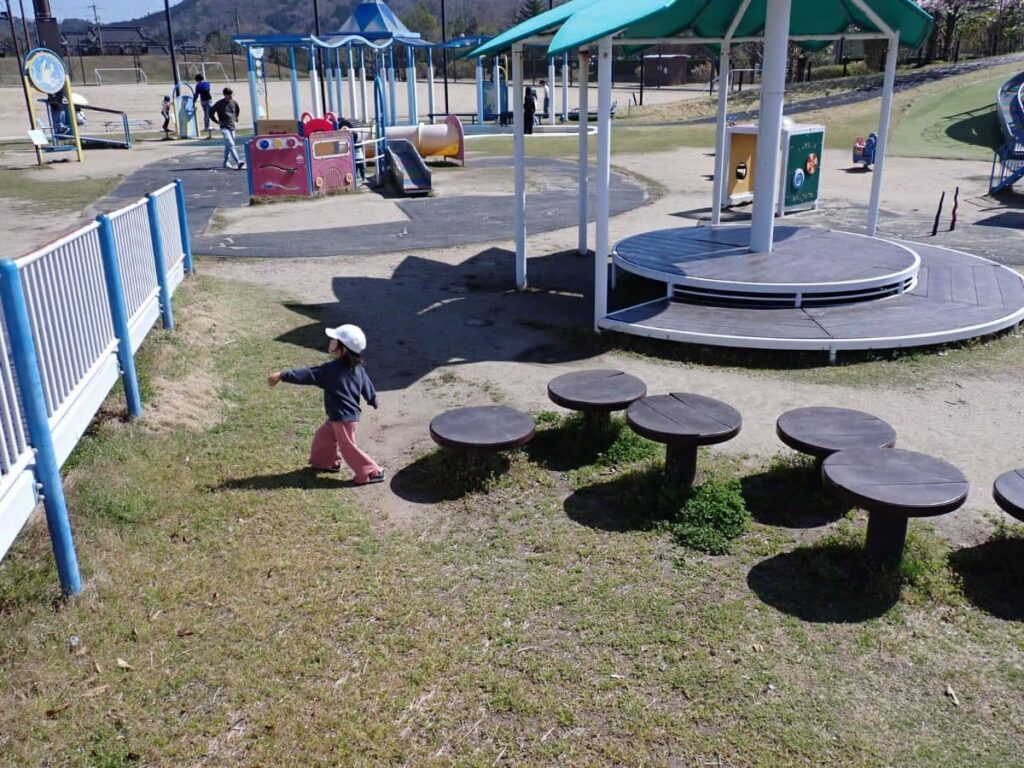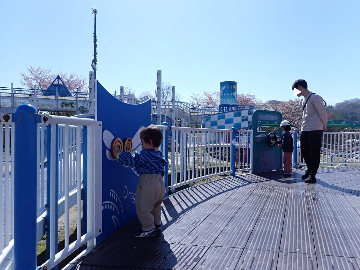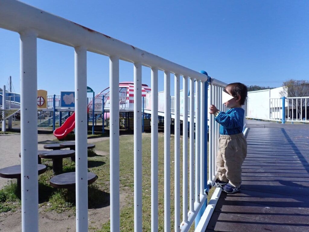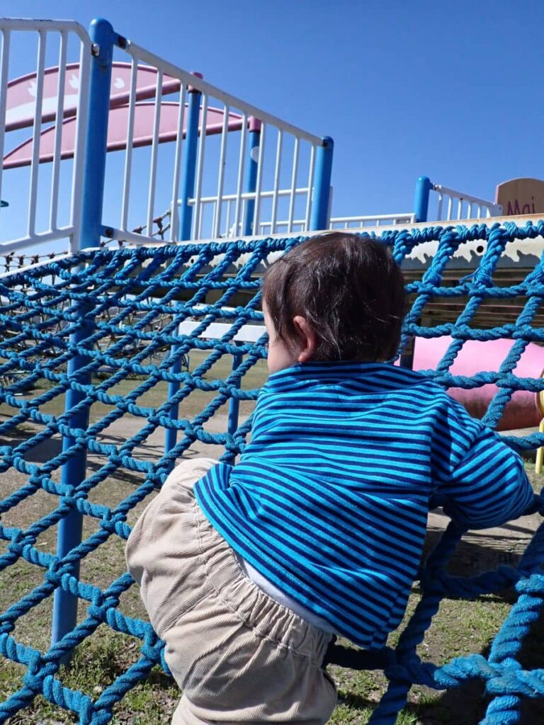 こりゃ1歳は泥まみれになるなーと、覚悟をしていたけれど、土の上に降りなくても遊べるところが多かったです。助かった^^;