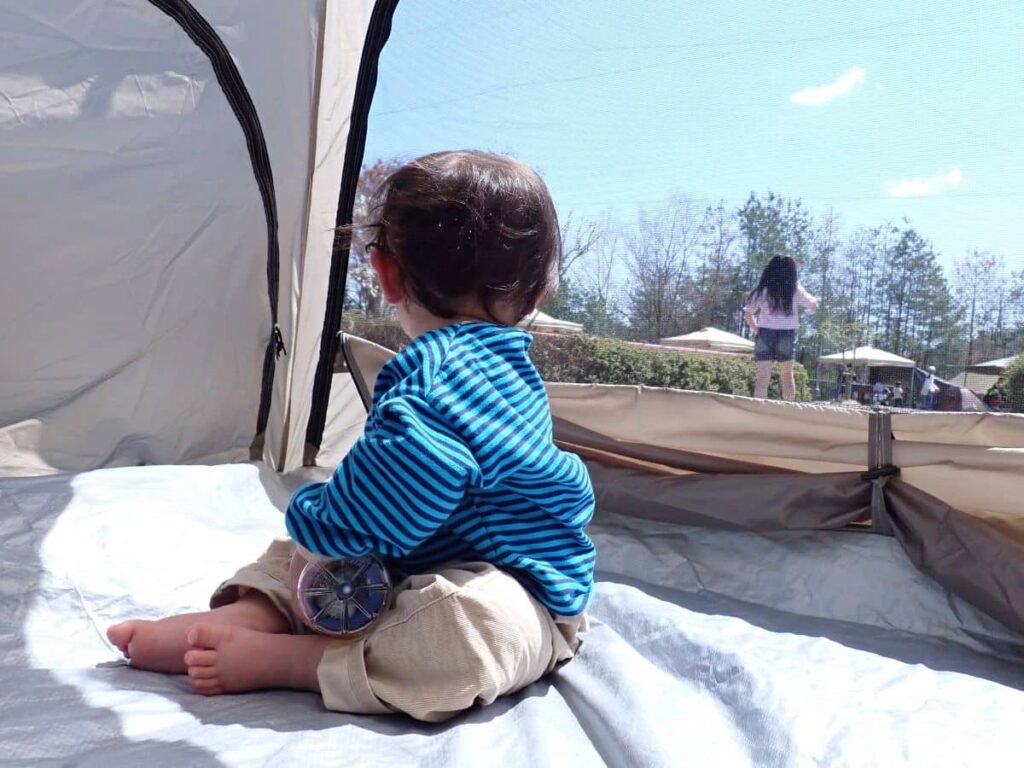 テントでお昼寝でもしてくれたら、その間はのんびりできるなあ。