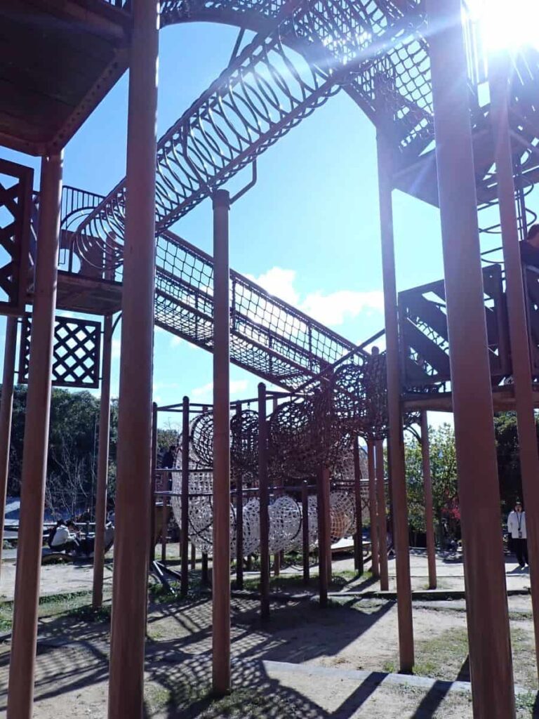 お昼はベンチがあったので、お弁当を食べました。お昼をまたいで遊具で遊ぶ人はそんなに多くなくて、3連休でもベンチが空いてました。