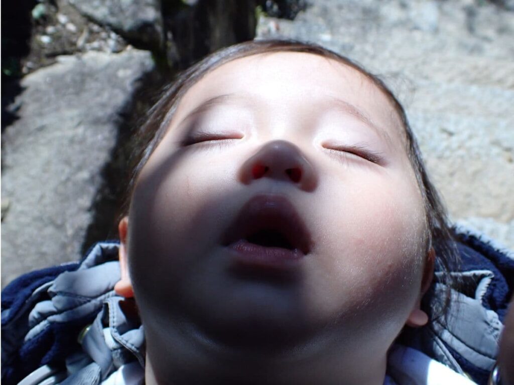 水遊びを楽しむ姉の横で、お昼寝ボーイ。