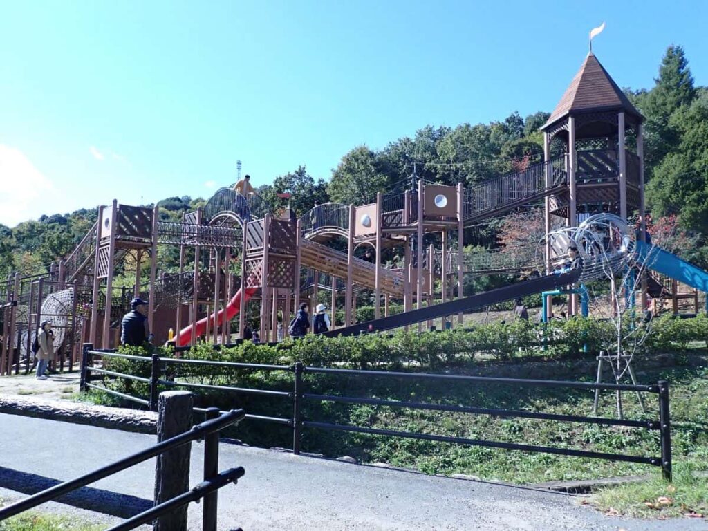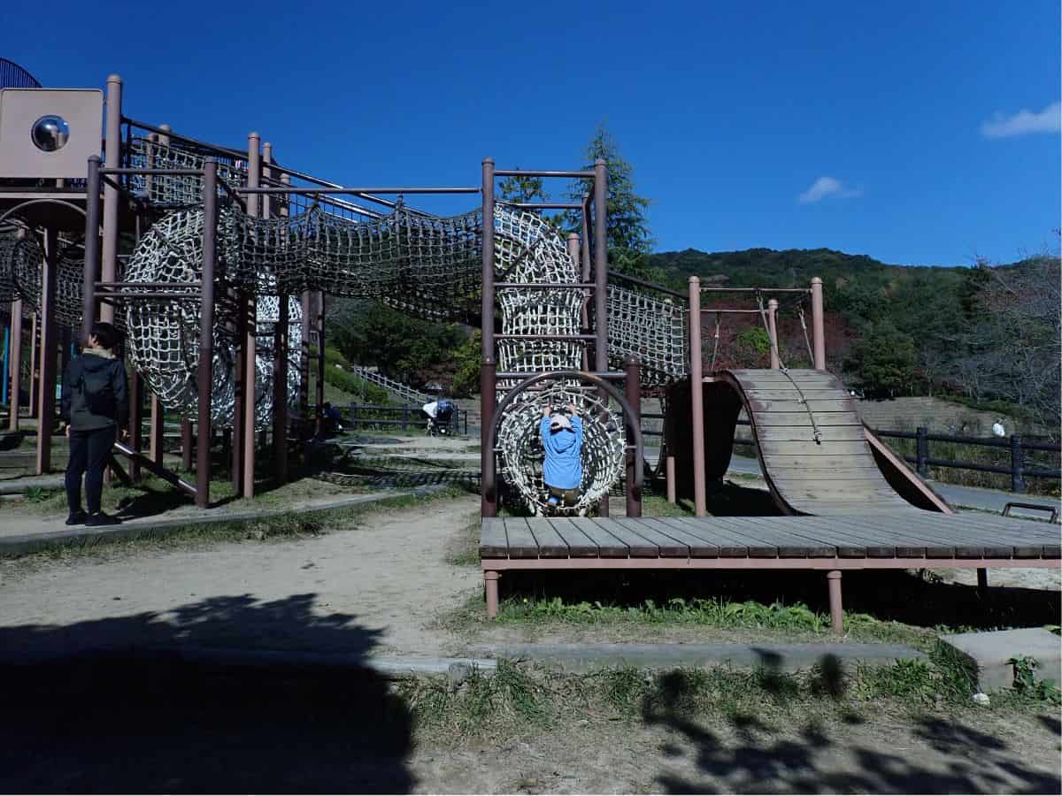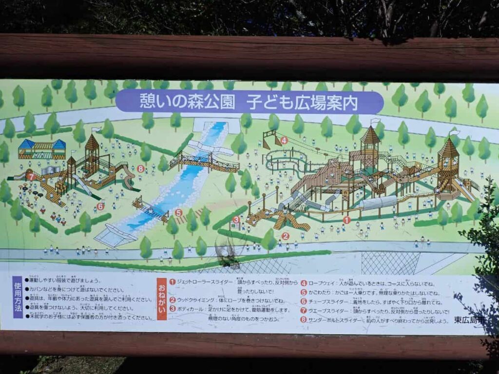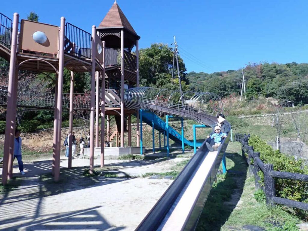西条駅からアクセス抜群で、キャンプやハイキングなど 各種アウトドアを楽しむことができる 憩いの森公園。大型遊具は難易度が高そうなものもあって、幅広い年齢の子どもと遊ぶことができるなあと感じました。