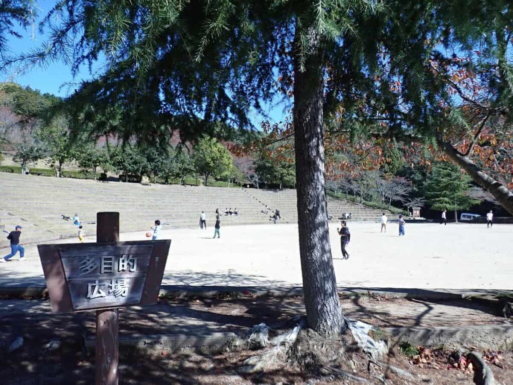 道を挟んで 子ども広場の反対には、広いグラウンドのある多目的広場がありました。