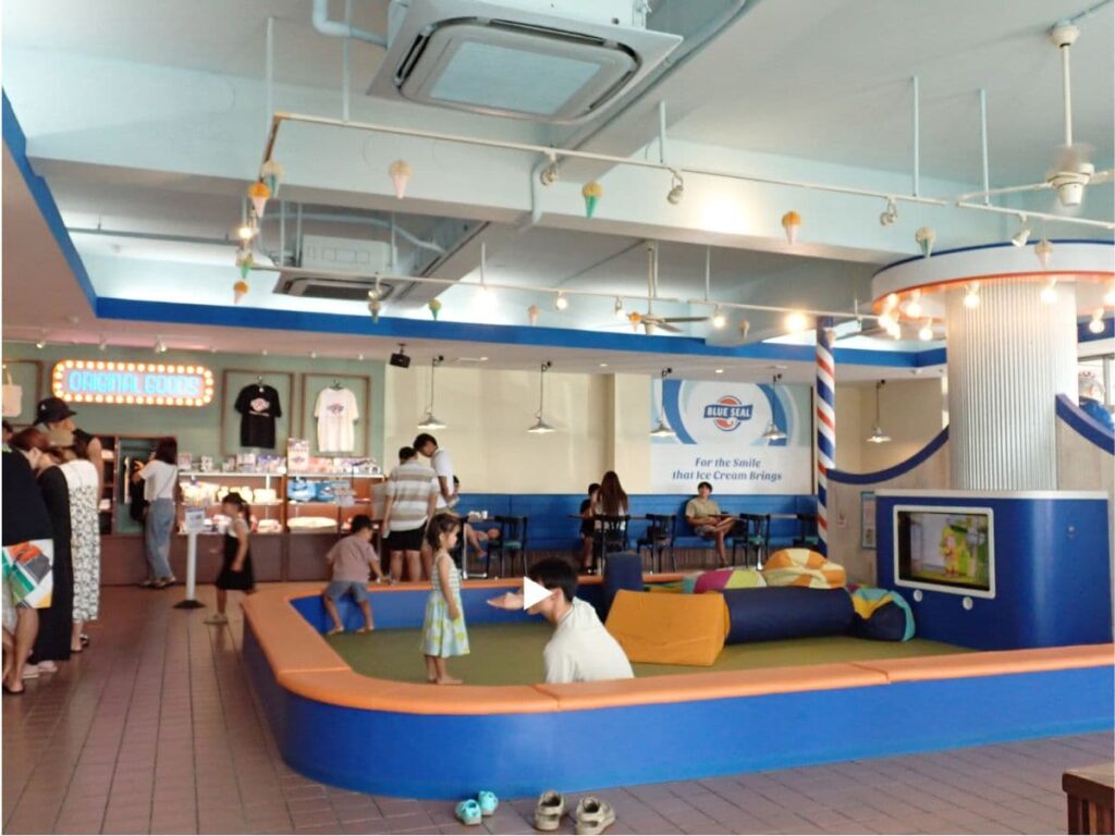 名護にあるブルーシールは、幼児が遊べるエリアが真ん中にあって、キッズフレンドリーな雰囲気。