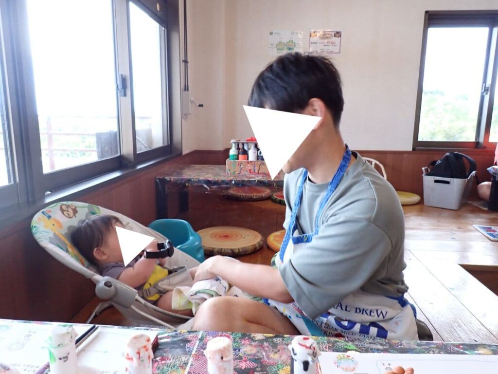 赤ちゃん可愛いですねー!と、お店の方はフレンドリー。バウンサーとイスがあったので、赤ちゃん連れも大丈夫でした。集中して絵付けをして、仕上げたものは持って帰れます。想像以上に楽しめました^^