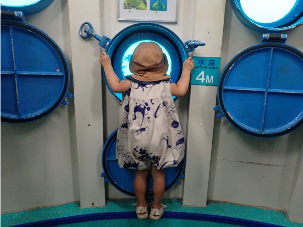 海中展望塔を降りると、小窓から魚を沢山見ることができました。