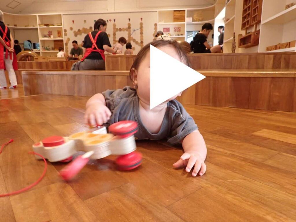 といってもわが家は、遊び場メインで利用させてもらっていました。広いエリアだけど、貸し切り状態。あまり見たことのないおもちゃもあって、0歳&3歳同時に楽しめた^^