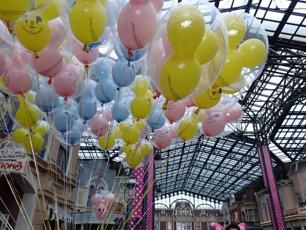 園内のキャストさんから「もしかして、風船しぼんじゃいました?たぶんレシートがあれば空気を入れなおすか、交換で対応できますよ!」と声をかけていただいて、ワールドバザールへ戻ってみることに。