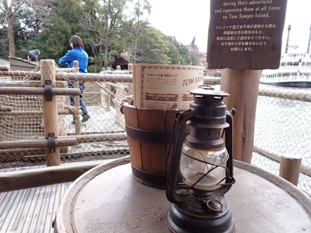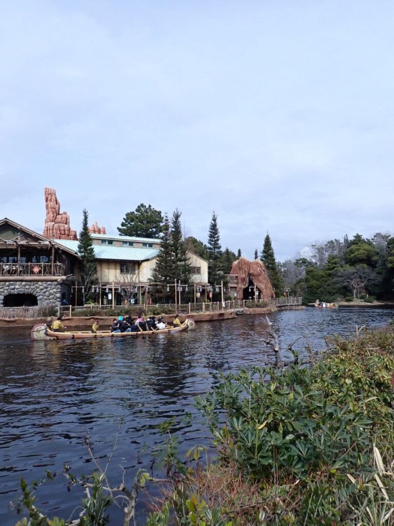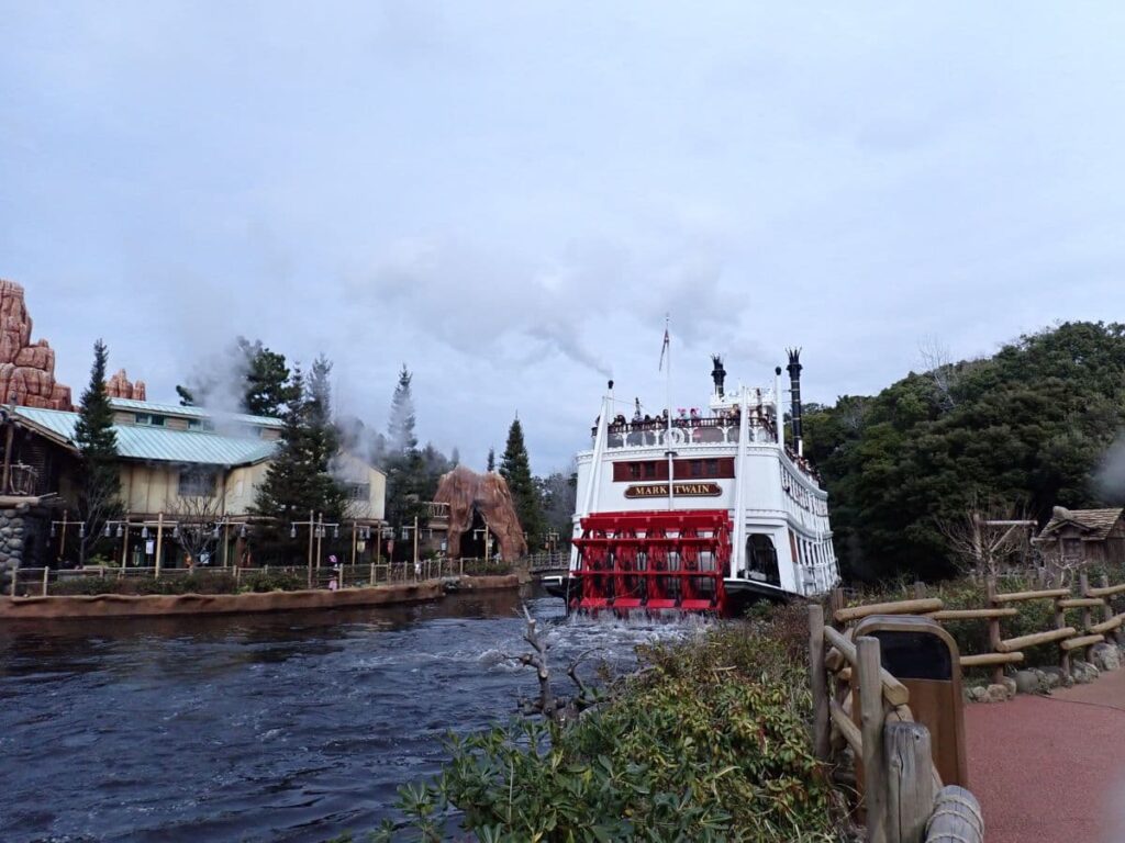 ジャングルクルーズに乗るつもりが、道に迷って、トムソーヤ島いかだが目に入って、でもまあ乗ってみようかということで行ってみることに。