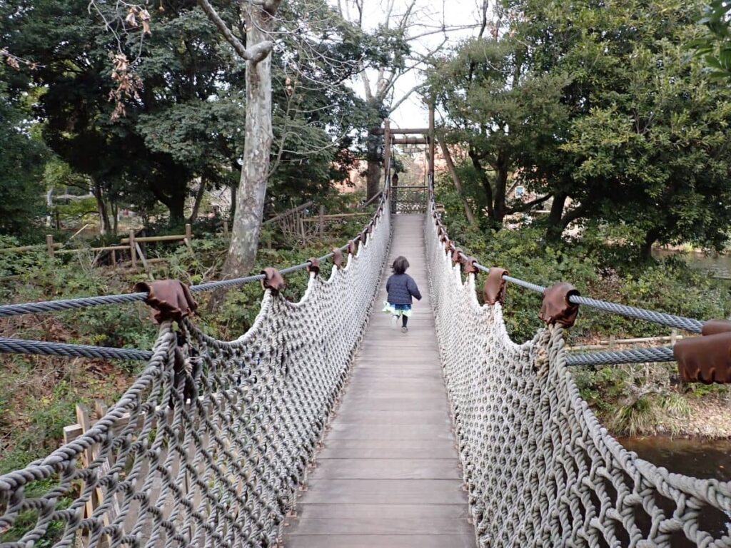 吊り橋を駆け抜けたり。