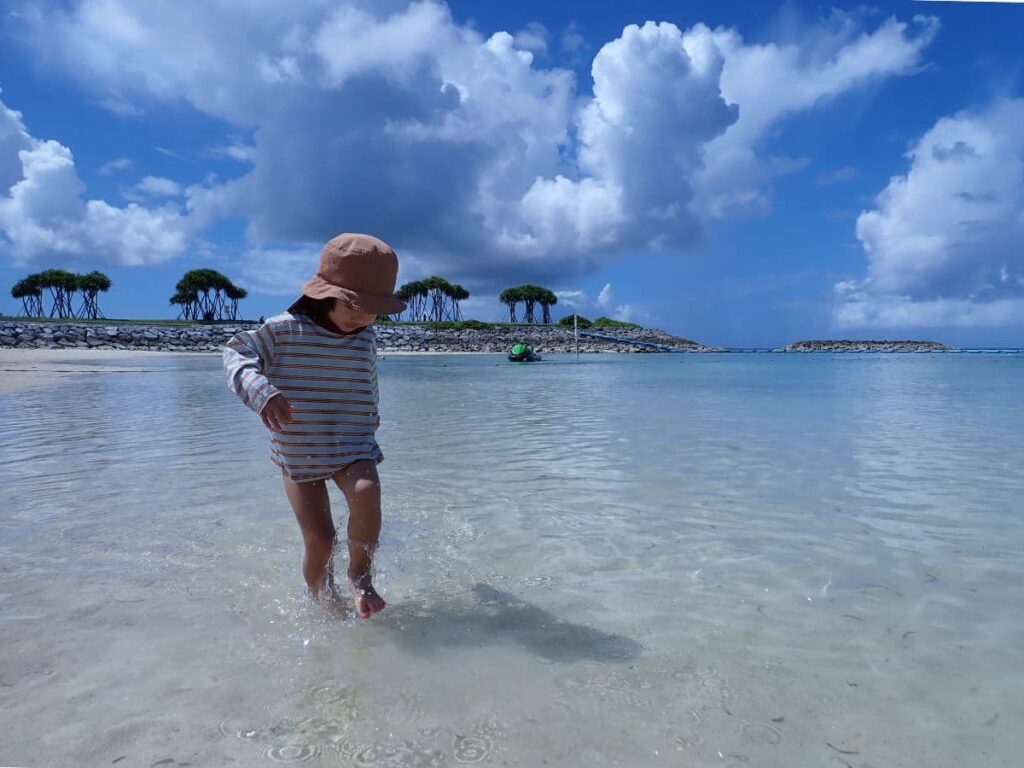 地元の海へ行った時は、足元が見えないのが怖かったのか、全く海に入ろうとしなかったわが子。2歳の夏も、3歳の沖縄へ行く前の7月も、海水浴チャレンジはしたけれど、不発。