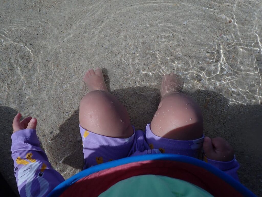 3歳の娘が赤ちゃんだったときは、0歳と海水浴に行くという発想がなかったけれど、早めの(早すぎる)海水浴デビュー。