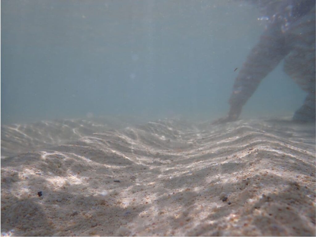 お風呂のように温い海水は、ずっと浸かっていたい居心地の良さ。そして、人がいてもお構いなしにスイスイ泳いでいる魚たち。